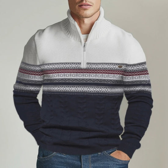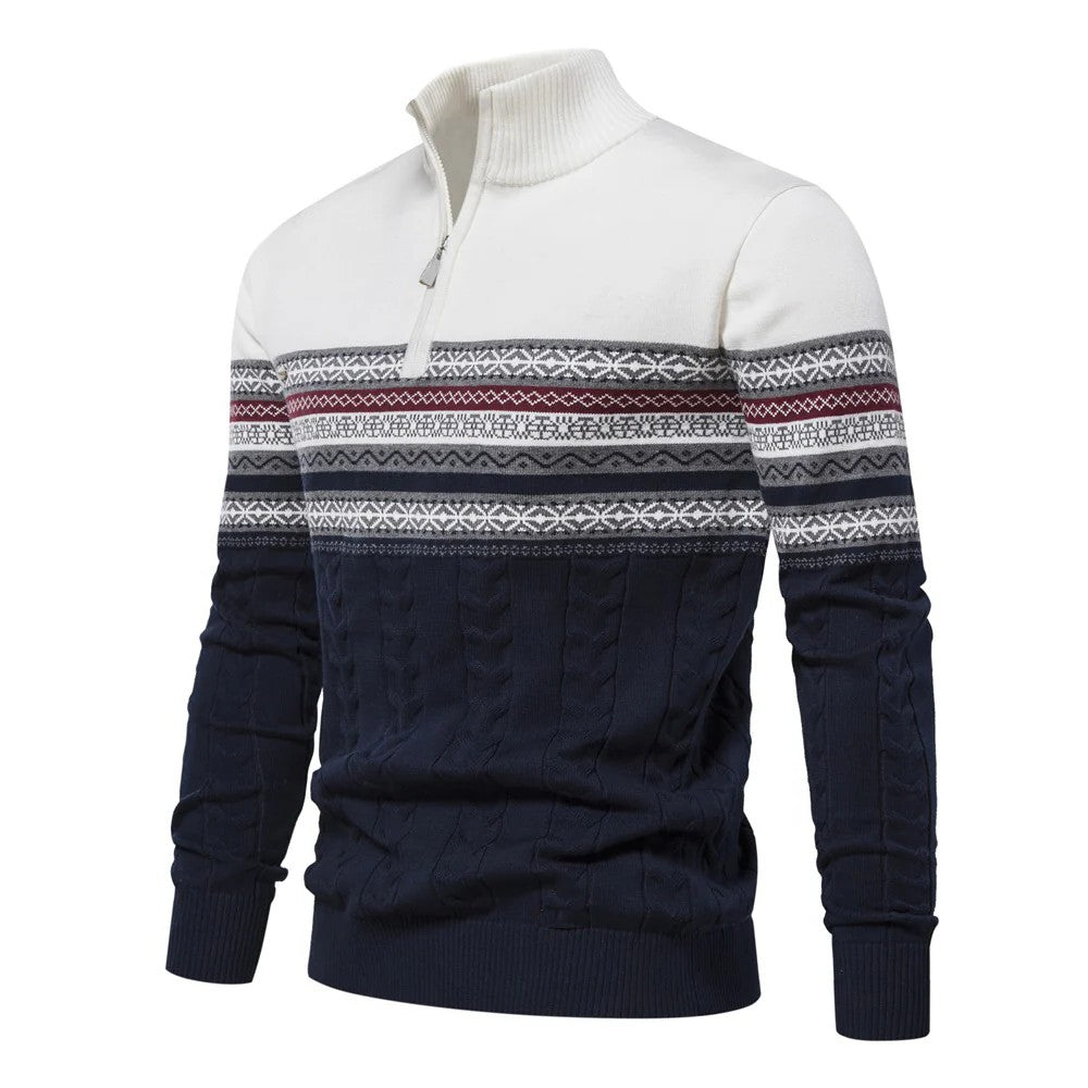 Maglione Fair Isle Alpino in cotone con cerniera a un quarto